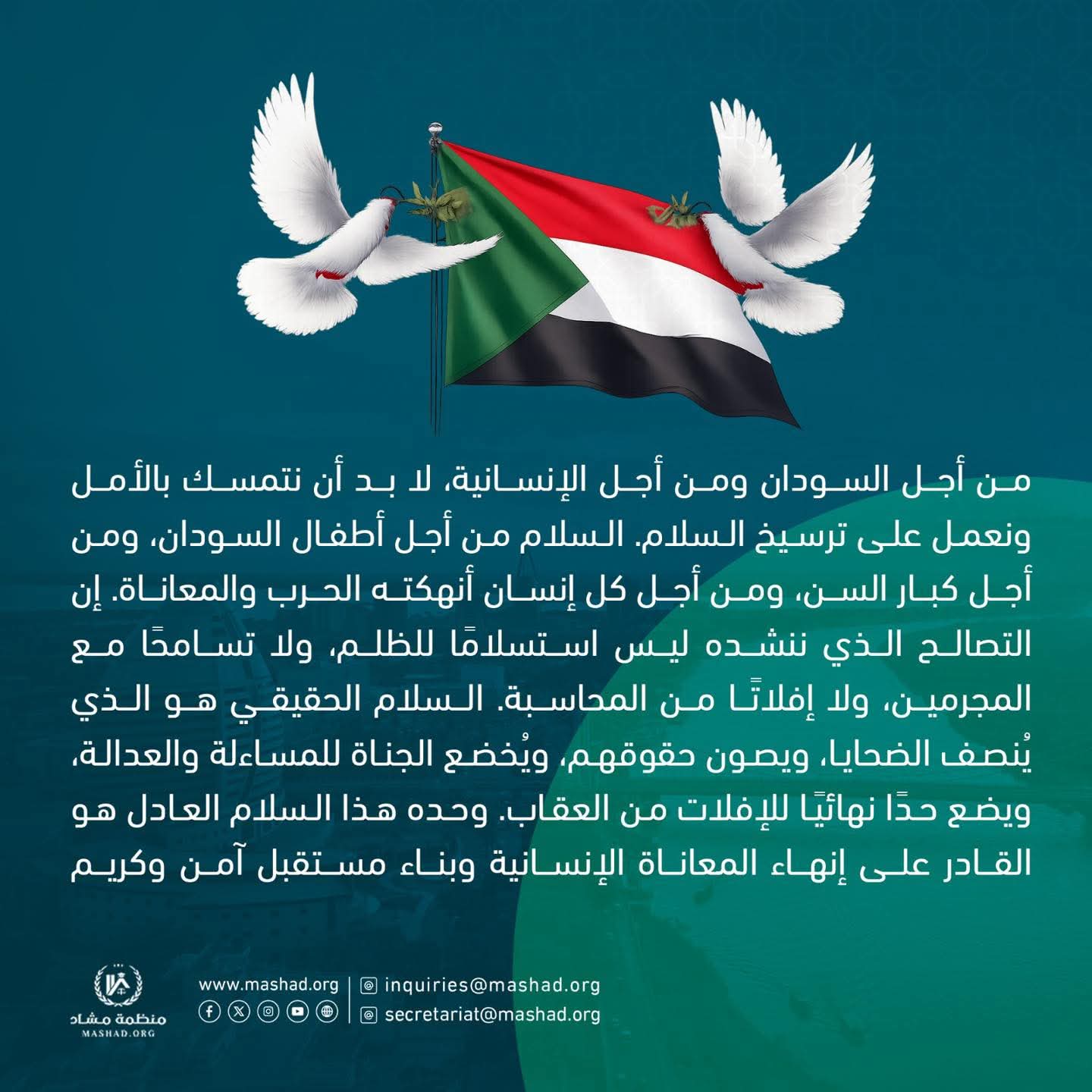 منظمة مشاد تعمل على تقديم الإغاثة العاجلة، توثيق الانتهاكات، وتمكين المجتمعات المتضررة عبر مشاريع تنموية مستدامة.