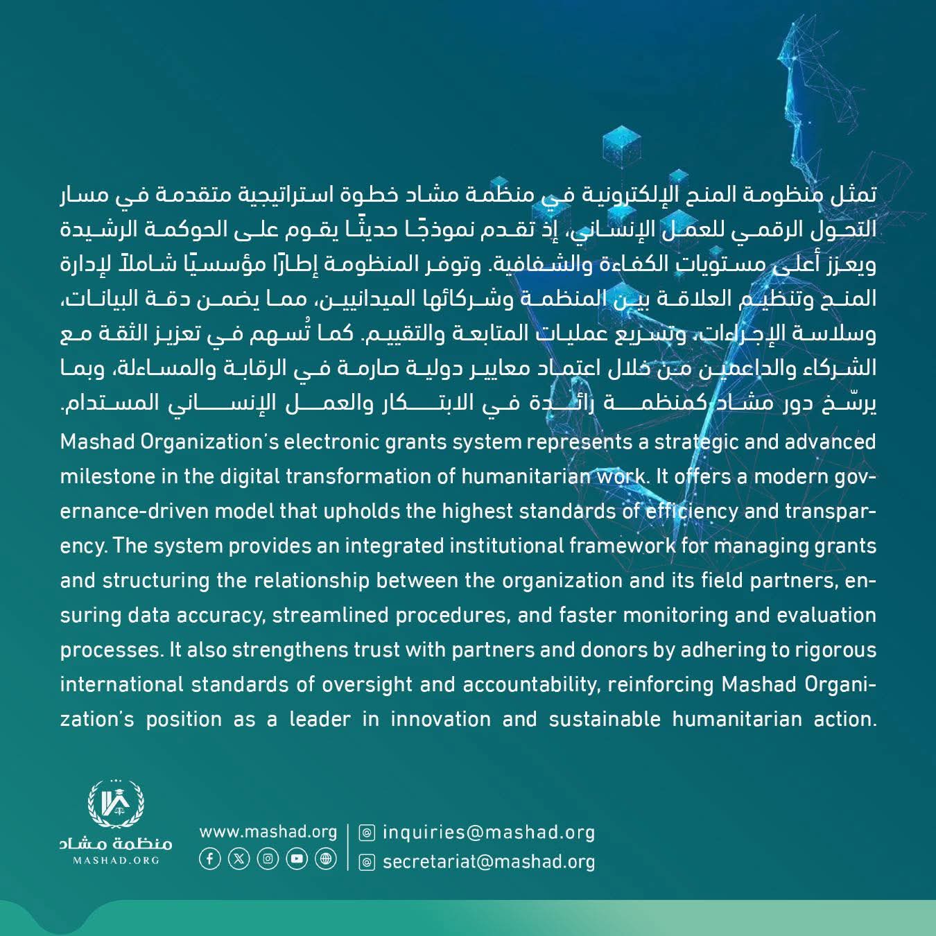 “مشاد” هي منظمة غير حكومية وغير ربحية، تأسست في عام 2020، وتتمتع بحضور محلي وإقليمي ودولي
