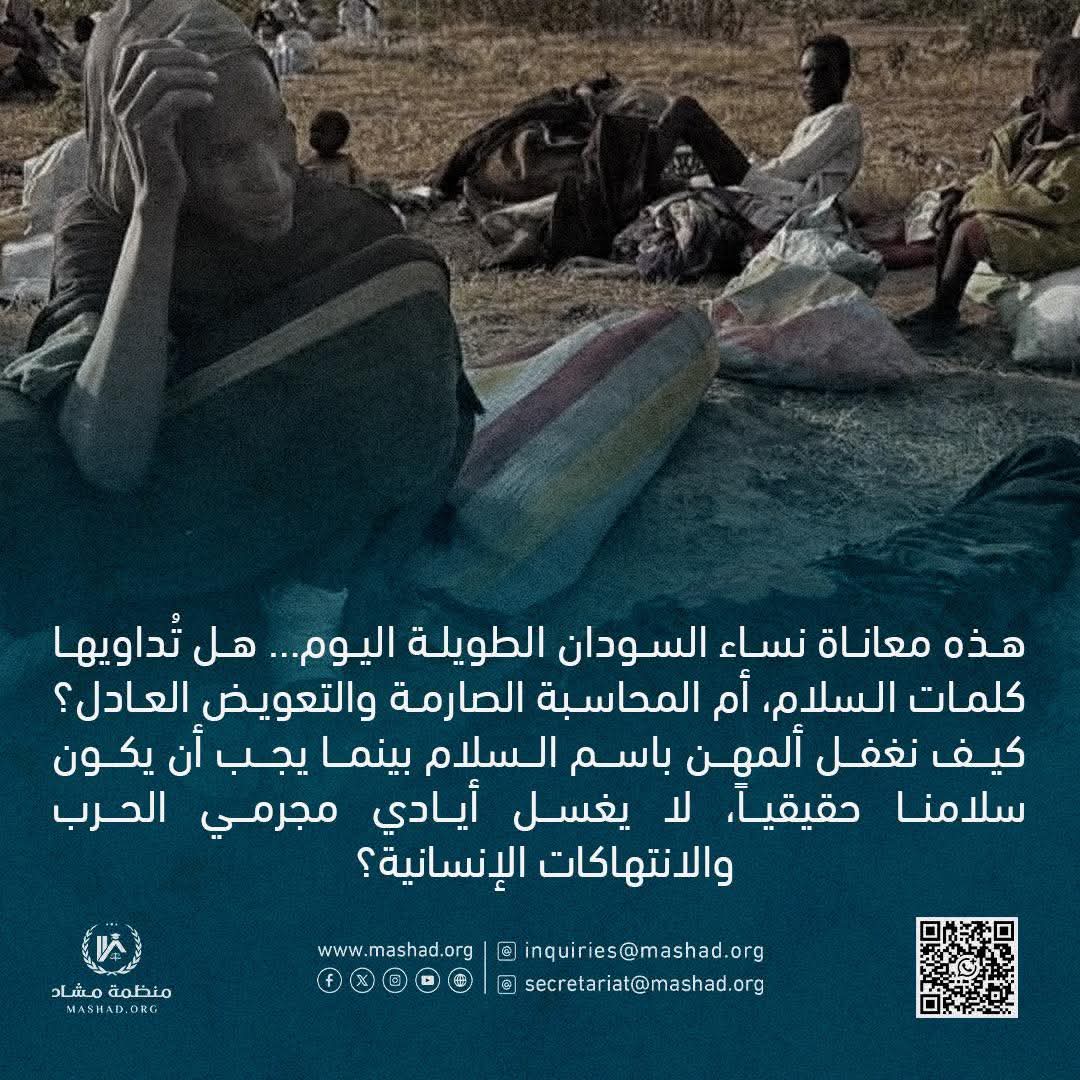 هذه معاناة نساء السودان الطويلة اليوم… هل تُداويها كلمات السلام، أم المحاسبة الصارمة والتعويض العادل؟ كيف نغفل ألمهن باسم السلام بينما يجب أن يكون سلامنا حقيقياً، لا يغسل أيادي مجرمي الحرب والانتهاكات الإنسانية؟
