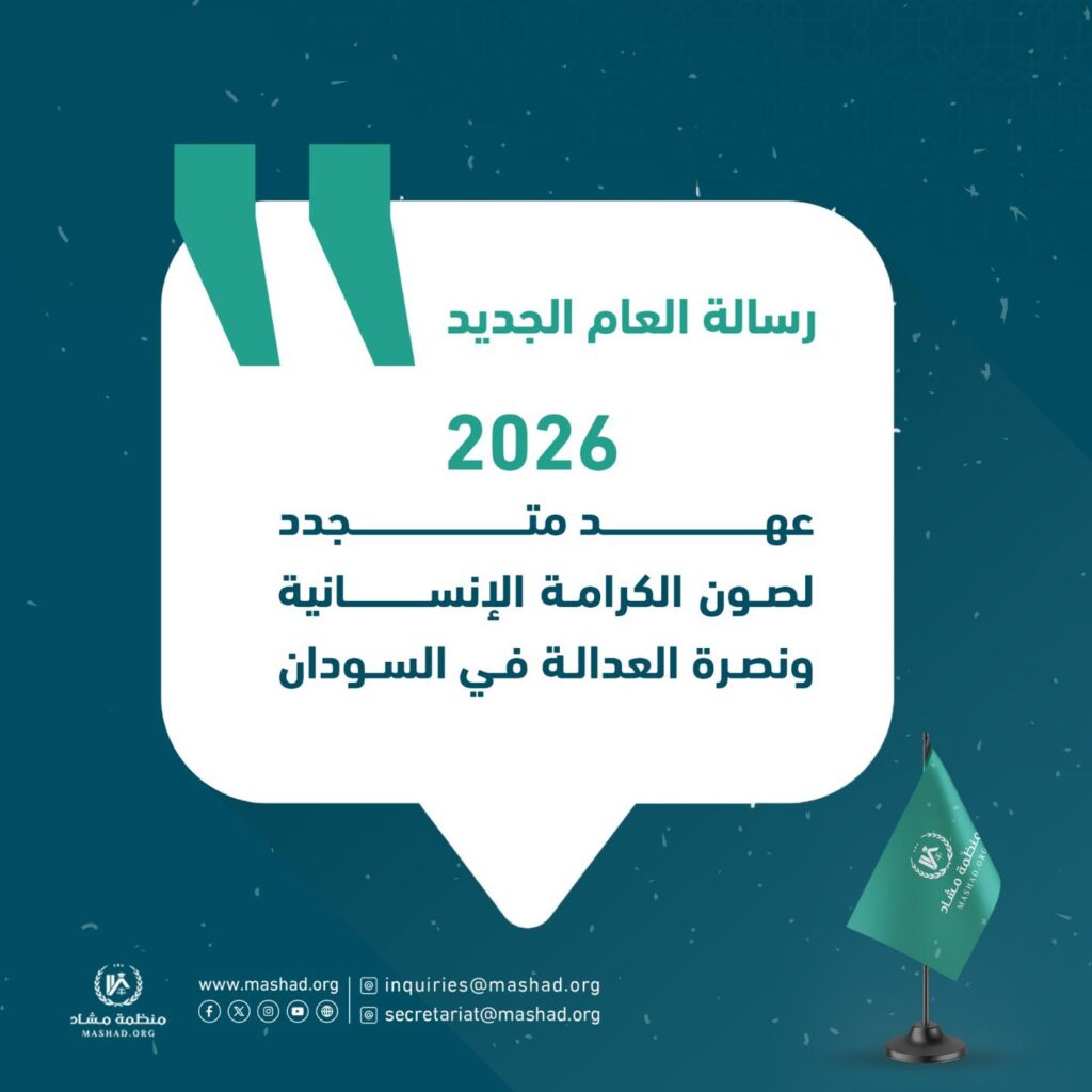 نسأل الله أن يكون العام الجديد بداية حقيقية لوضع حدٍ للمعاناة، وانطلاقة لمسار سلامٍ عادلٍ ومستدام، يفضي إلى إنصاف الضحايا، ويحقق تطلعات شعب السودان في الحرية، والكرامة، والعدالة