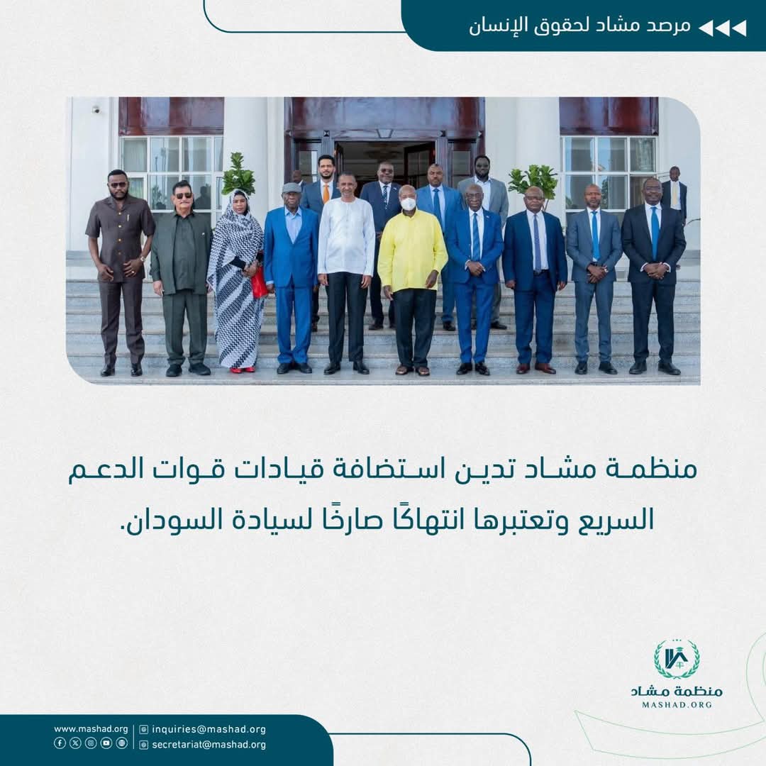 منظمة مشاد تدين استضافة قيادات قوات الدعم السريع وتعتبرها انتهاكًا صارخا لسيادة السودان