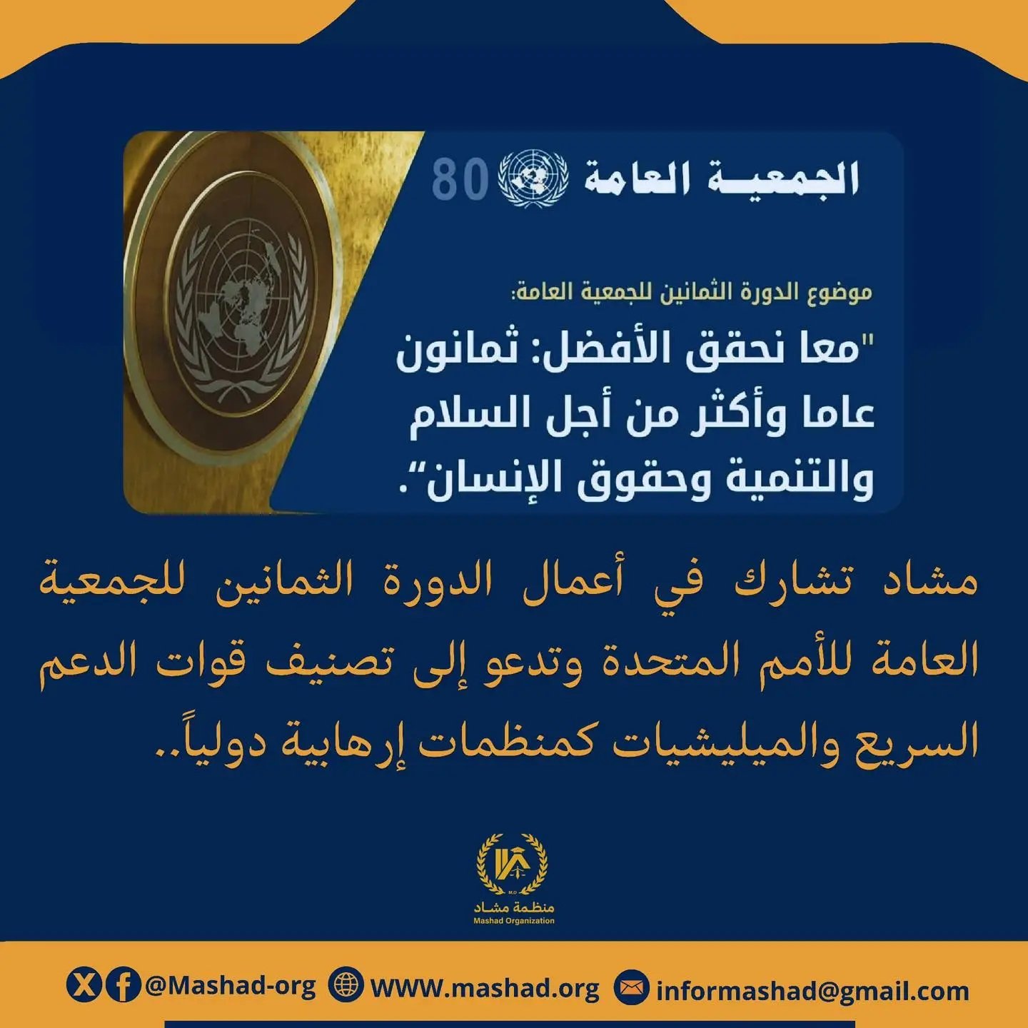 منظمة مشاد تشارك في أعمال الدورة الثمانين للجمعية العامة للأمم المتحدة وتدعو إلى تصنيف قوات الدعم السريع والميليشيات كمنظمات إرهابية دولياً