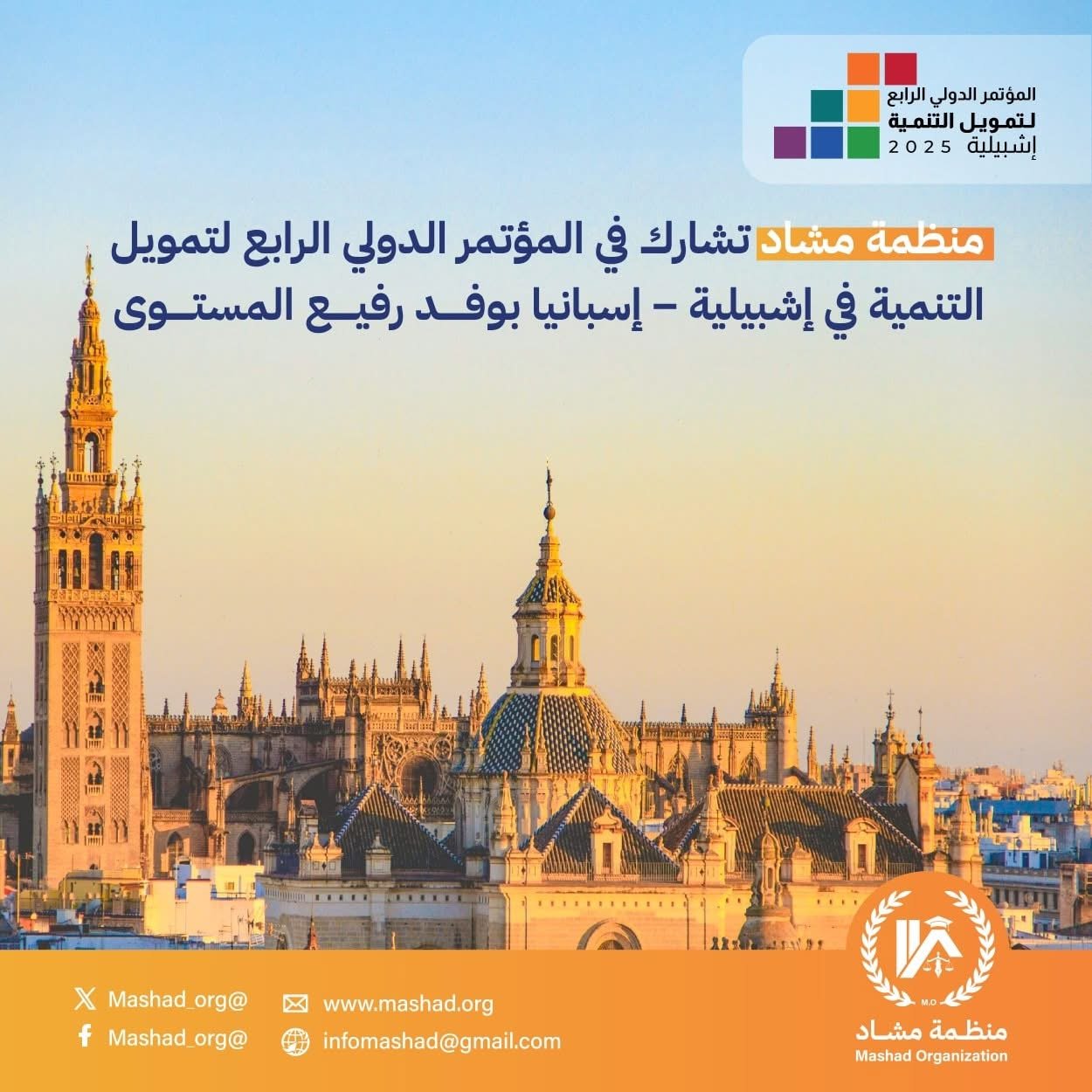 تُعلن منظمة مشاد عن مشاركتها في المؤتمر الدولي الرابع لتمويل التنمية، المزمع انعقاده في مدينة إشبيلية – إسبانيا خلال الفترة من 30 حزيران/يونيو إلى 3 تموز/يوليو 2025، وذلك بمشاركة دولية رفيعة المستوى تشمل ممثلين عن الحكومات، والمؤسسات المالية الدولية، والمجتمع المدني، والقطاع الخاص.