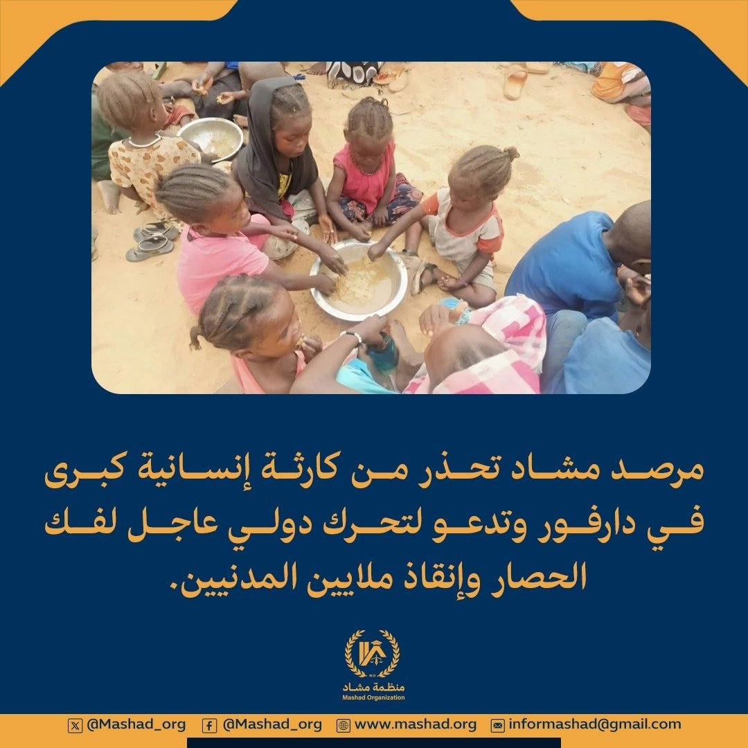 ⭕️مرصد مشاد يحذر من كارثة إنسانية كبرى في دارفور ويدعو لتحرك دولي عاجل لفك الحصار وإنقاذ ملايين المدنيين⭕️