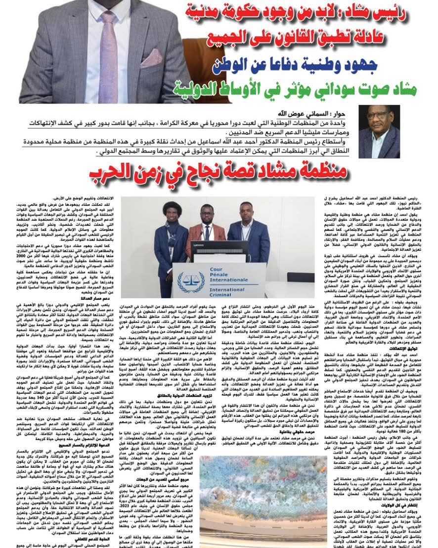 Home السلام ⭕️ لا يفوتكم الاطلاع على الحوار المهم مع رئيس منظمة مشاد عبر الحاكم نيوز، والذي يسلط الضوء على أبرز القضايا الوطنية ويعرض رؤية المنظمة وجهودها في دعم قضايا الشعب السودانيإن بناء دولة مستقرة وعادلة يتطلب قيام حكومة مدنية رشيدة تُعلي من سيادة حكم القانون وتطبقه على الجميع دون استثناء، بما يكفل تحقيق العدالة والمساواة وصون حقوق المواطنين#منظمة_مشاد