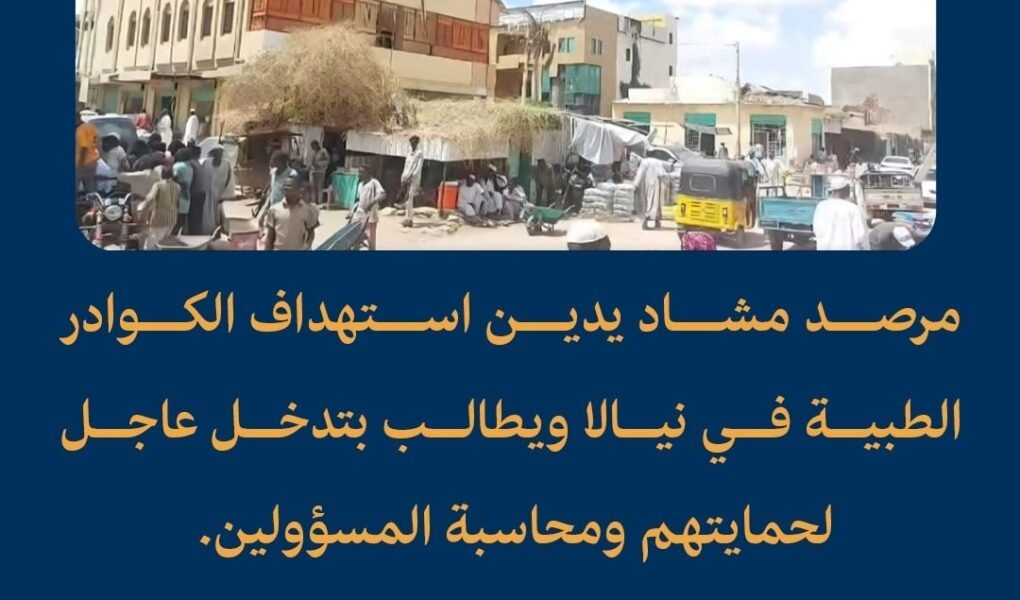 ⭕️مرصد مشاد يدين استهداف الكوادر الطبية في نيالا ويطالب بتدخل عاجل لحمايتهم ومحاسبة المسؤولين.⭕️