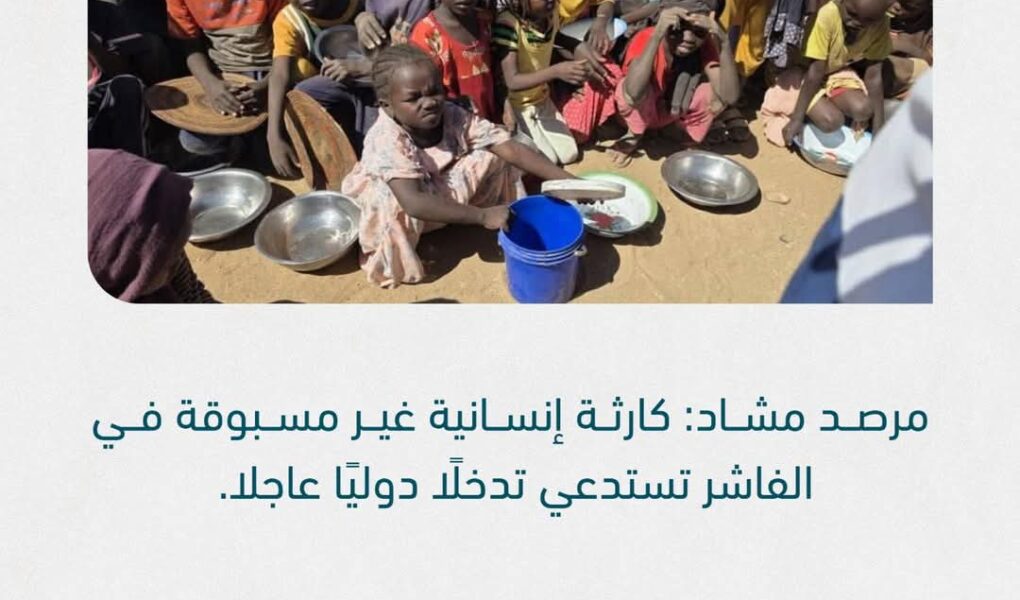 مرصد مشاد: كارثة إنسانية غير مسبوقة في الفاشر تستدعي تدخلًا دوليًا عاجلًا