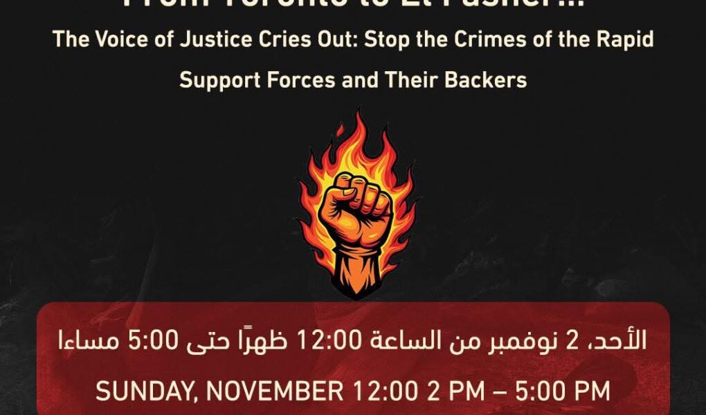 From Toronto to El Fasher… The Voice of Justice Cries Out: Stop the Crimes of the Rapid Support Forces and Their Backers❗️الأحد، 2 نوفمبرمن الساعة 12:00 ظهرًا حتى 5:00 مساءا