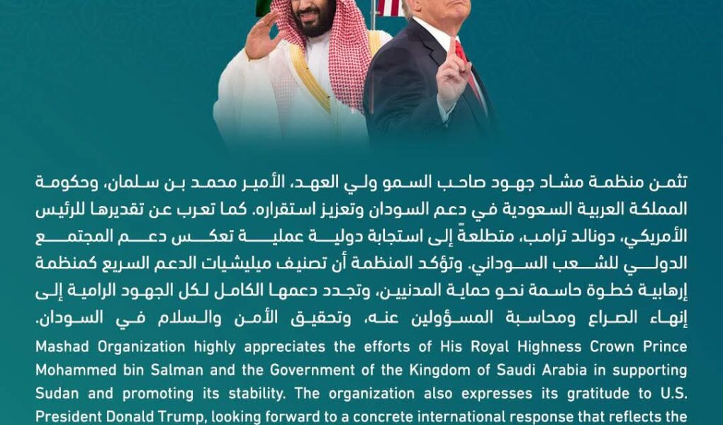 كما تعرب عن تقديرها للرئيس الأمريكي، دونالد ترامب، متطلعةً إلى استجابة دولية عملية تعكس دعم المجتمع الدولي للشعب السوداني. وتؤكد المنظمة أن تصنيف ميليشيات الدعم السريع كمنظمة إرهابية خطوة حاسمة