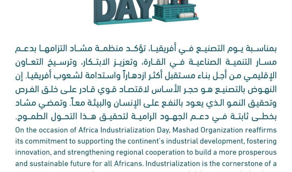 إن النهوض بالتصنيع هو حجر الأساس لاقتصاد قوي قادر على خلق الفرص وتحقيق النمو الذي يعود بالنفع على الإنسان والبيئة معاً.وتمضي مشاد بخطى ثابتة في دعم الجهود الرامية لتحقيق هذا