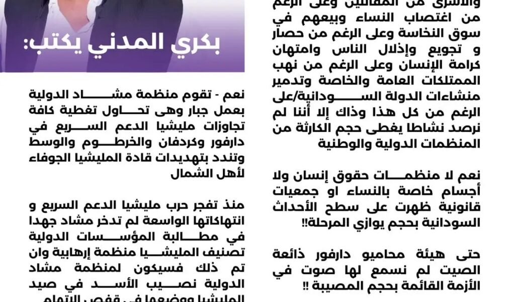 تدين منظمة مشاد بأشد العبارات الجريمة المروّعة التي أدّت إلى وفاة الصحفي النور سليمان النور