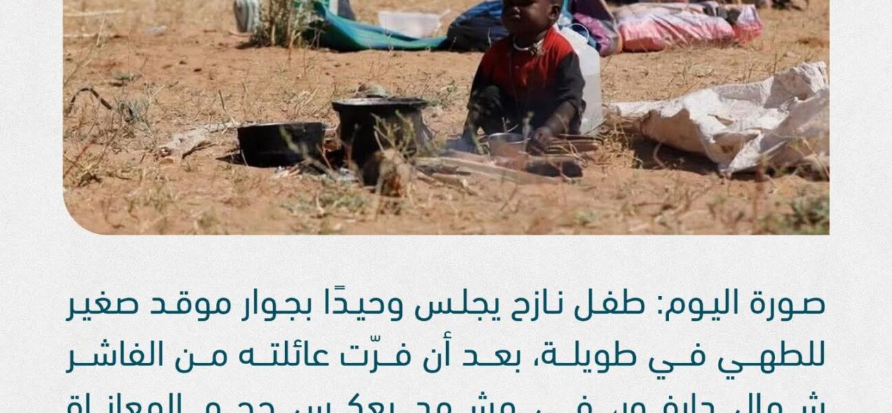 بعد أن فرّت عائلته من الفاشر شمال دارفور، في مشهد يعكس حجم المعاناة والوحدة التي يواجهها الأطفال في مناطق النزاع.