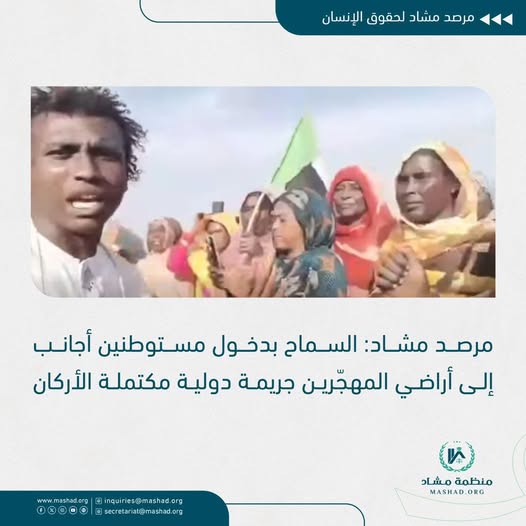 يدين مرصد مشاد لحقوق الإنسان بأشد العبارات التطور الخطير الذي شهدته الساحة السودانية خلال الأيام الخمسة الماضية، والمتمثل في سماح قوات الدعم السريع لمجموعات وافدة من إفريقيا الوسطى والنيجر وتشاد.