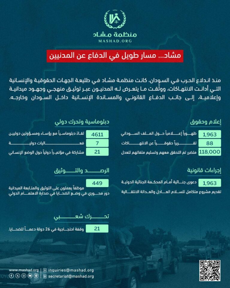 منذ اندلاع الحرب في السودان، كانت منظمة مشاد في طليعة الجهات الحقوقية والإنسانية التي بادرت إلى إدانة الانتهاكات، وتولت مسؤولية نقل ما يتعرض له الشعب…
