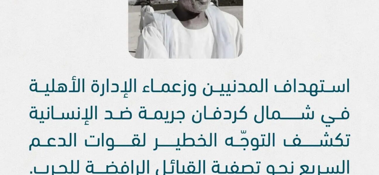 مرصد مشاد: استهداف المدنيين وزعماء الإدارة الأهلية في شمال كردفان جريمة ضد الإنسانية تكشف التوجّه الخطير لقوات الدعم السريع نحو تصفية القبائل الرافضة للحرب