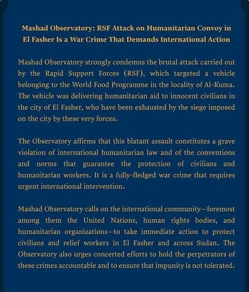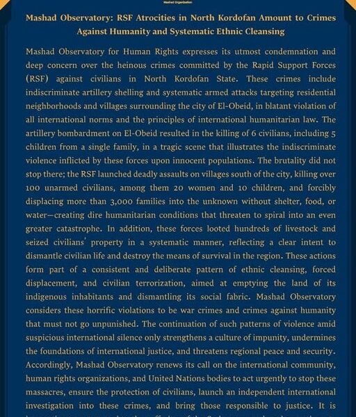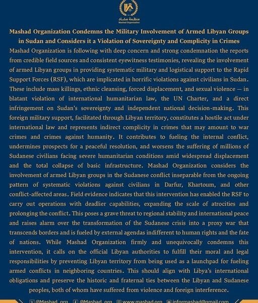 ⭕️منظمة مشاد تُعرب عن قلقها وتدعو للتهدئة في أحداث محلية الدبة – الولاية الشمالية.⭕️