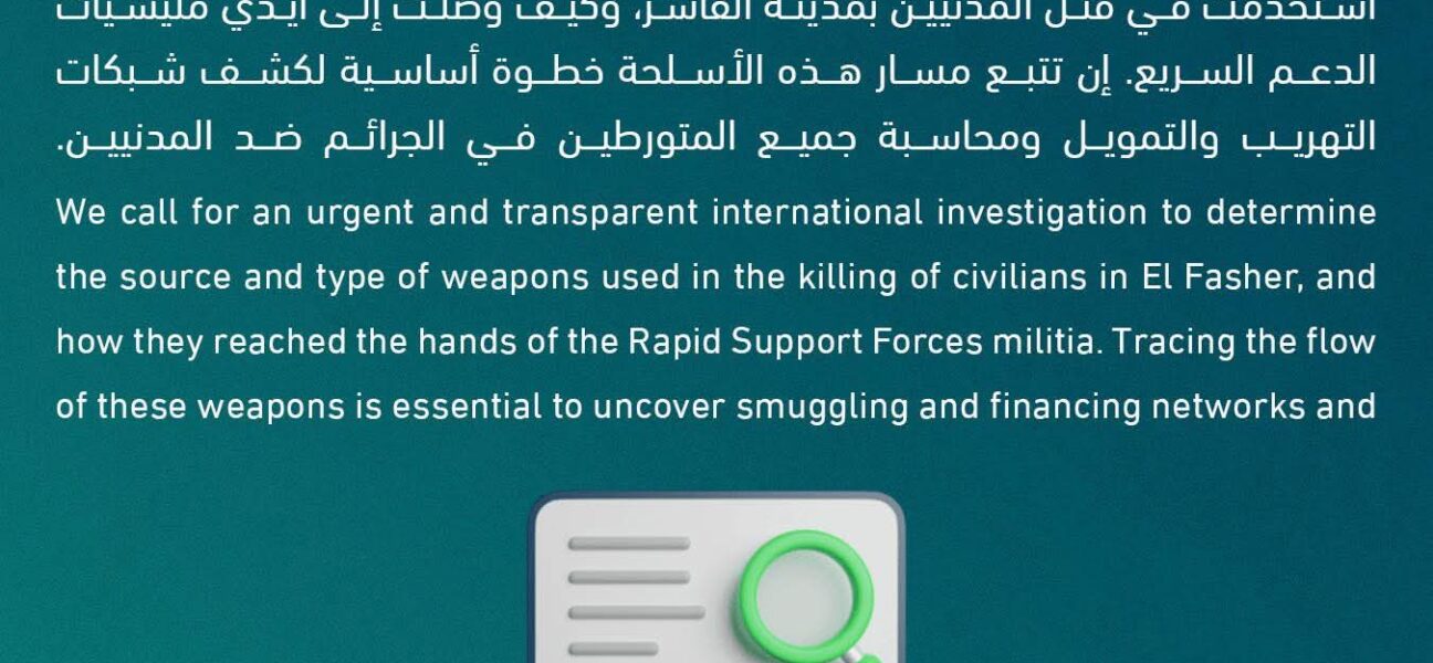 نطالب بفتح تحقيق دولي عاجل وشفاف لمعرفة مصدر ونوع الأسلحة التي استخدمت في قتل المدنيين بمدينة الفاشر