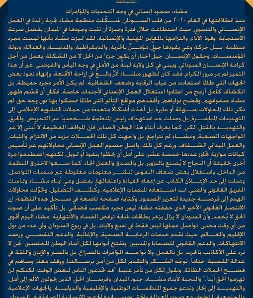 تدين منظمة مشاد بأشد العبارات الجريمة المروّعة التي أدّت إلى وفاة الصحفي النور سليمان النور